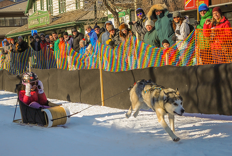Fun Racing: Julia Reynolds cruises by spectators during her qualification round of the 5th annual Kid’ ‘n’ Mutt race in Canmore on Saturday, Feb. 8, 2014. Reynolds ended up winning first place in the finals. (Photo by Dan Mantai/The Press)