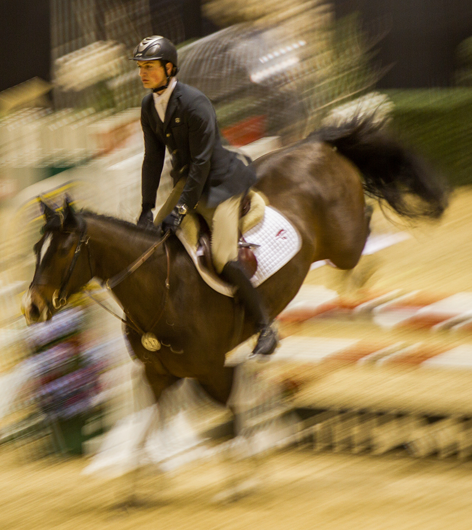 Big Jump: Equestrian rider Tobias Gruffman of Germany completes the course with a time of 73.296 in the February Classic at Spruce Meadows in Calgary on Saturday, Feb. 8, 2014. (Photo by Adelle Ellis/The Press)