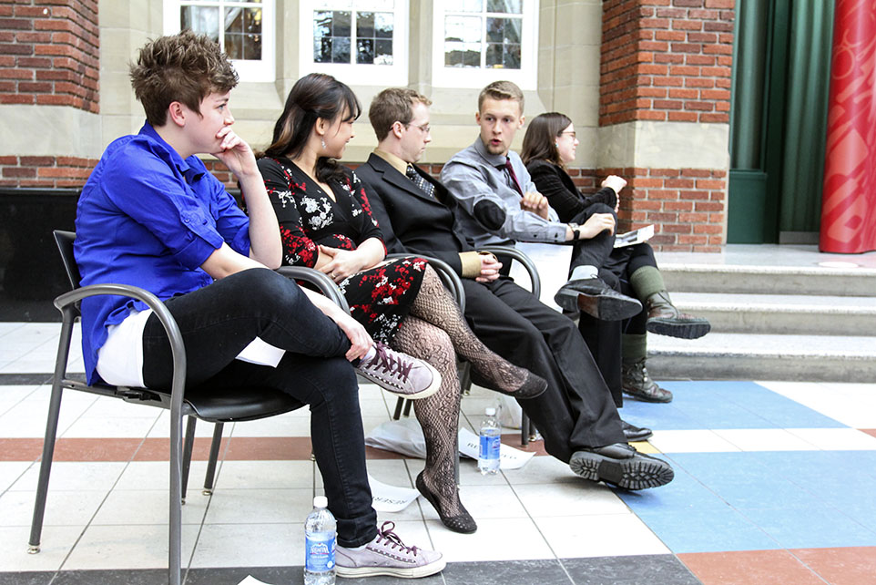 WAITING: SAITSA elections candidates wait in the Stan Grand Centre at SAIT Polytechnic campus for their turn to make their speeches in Calgary on Tuesday, March 4, 2014. Voting for the SAITSA elections takes place March 6 and 7. (Photo by Husson Zaman/The Press