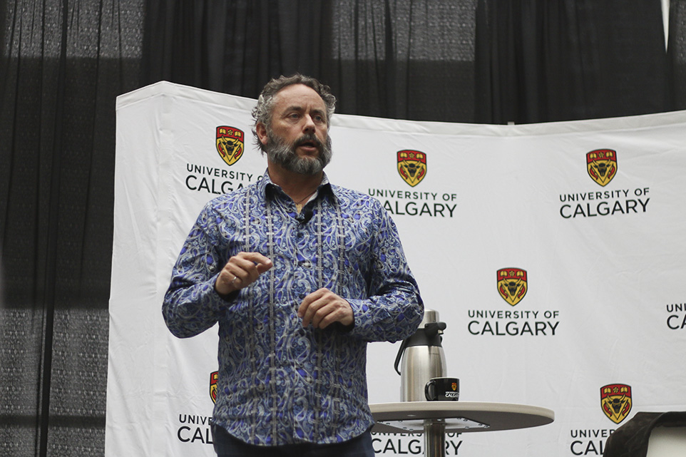 Giving helpful advice: Entrepreneur, philanthropist and former dragon on CBC’s reality business show “Dragon’s Den” Brett Wilson, speaks at his alma mater on redefining success. As a Haskayne alumnus Wilson gave wisdom at the UofC in Scurfield Hall and shared stories on how he became the business mogul he is today. (Photo by Sierra St John/The Press)
