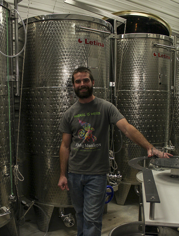 Colin Ryan poses in front of the fermentors at the Fallentimber Meadery outside of Water Valley, Alta., on Saturday, Sept. 27, 2014. These tanks, which hold 1300 lbs of honey and 3900 lbs of water, are used to ferment the mead. (Photo by Jordyn Thomson/The Press)
