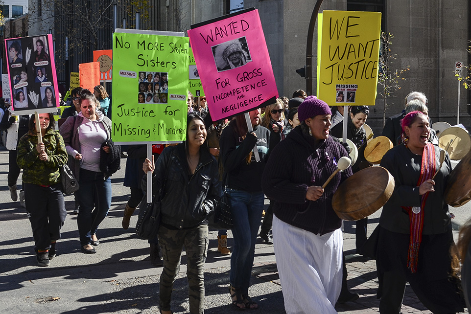 Save our Sisters: The tenth annual Sisters in Spirit Walk Vigil marched through downtown Calgary to bring awareness to the murdered and missing aboriginal women in Canada. (Photo by Jenna Dulewich/The Press)
