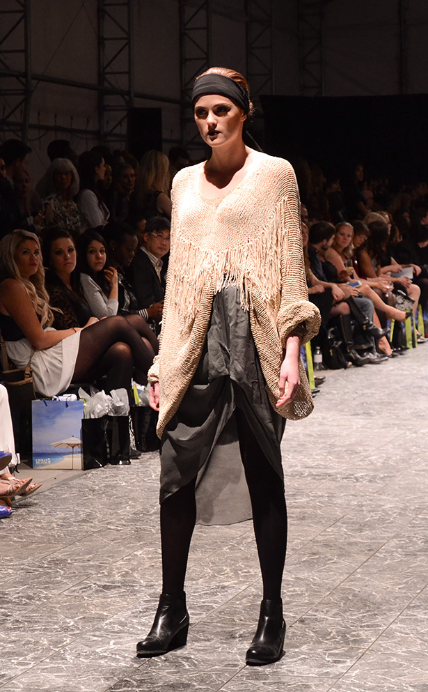 A model poses in Laura Siegel’s fall/winter collection during the runway show. Siegal is a Toronto-based designer specializing in casual luxury.