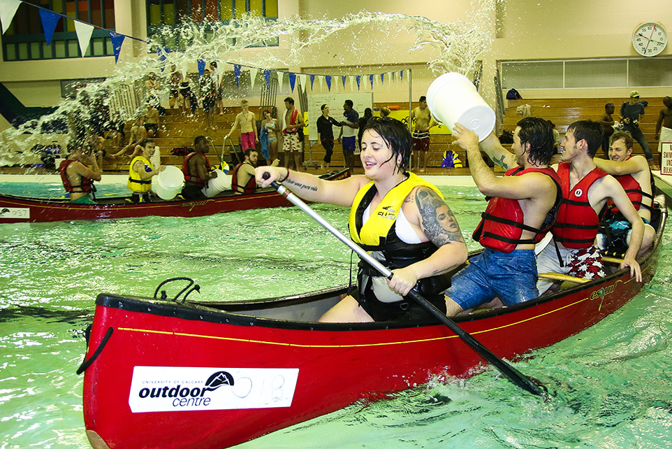Intramural teams fight and splash in Battleship H2O in Calgary on Tuesday, Oct. 7, 2014. Team Iceberg is here fighting for first place against Goon Squad. (Photo by Jenn Gardiner /The Press)