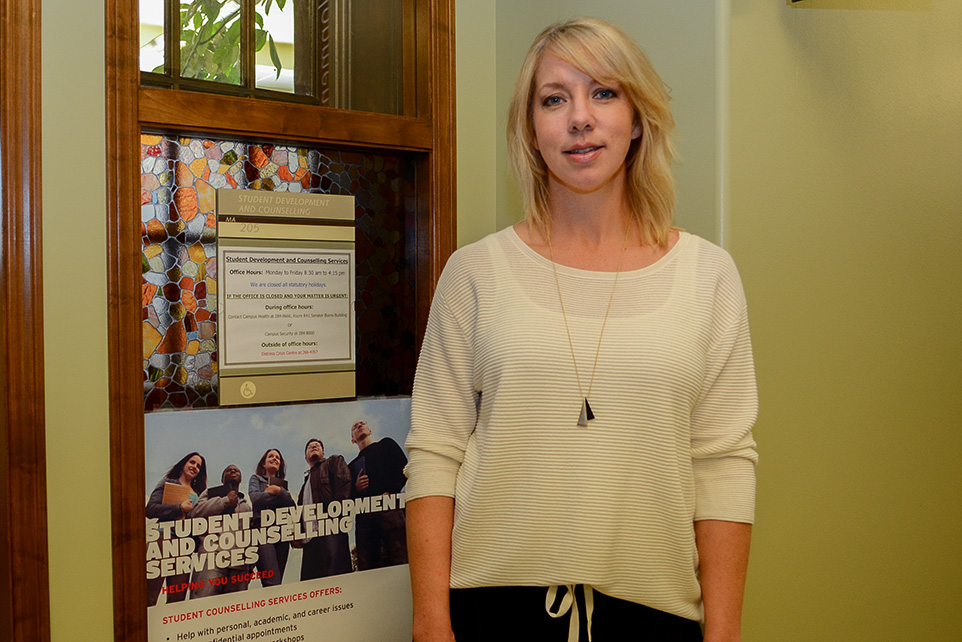 Media Impact: SAIT counsellor Shelann McQuay posed outside of the SAIT Student Development and Counselling Services office located in Heritage Hall, room MA 205 at SAIT, after discussing how domestic violence cases in the media can affect victims. (Photo by Jenna Dulewich/The Press)