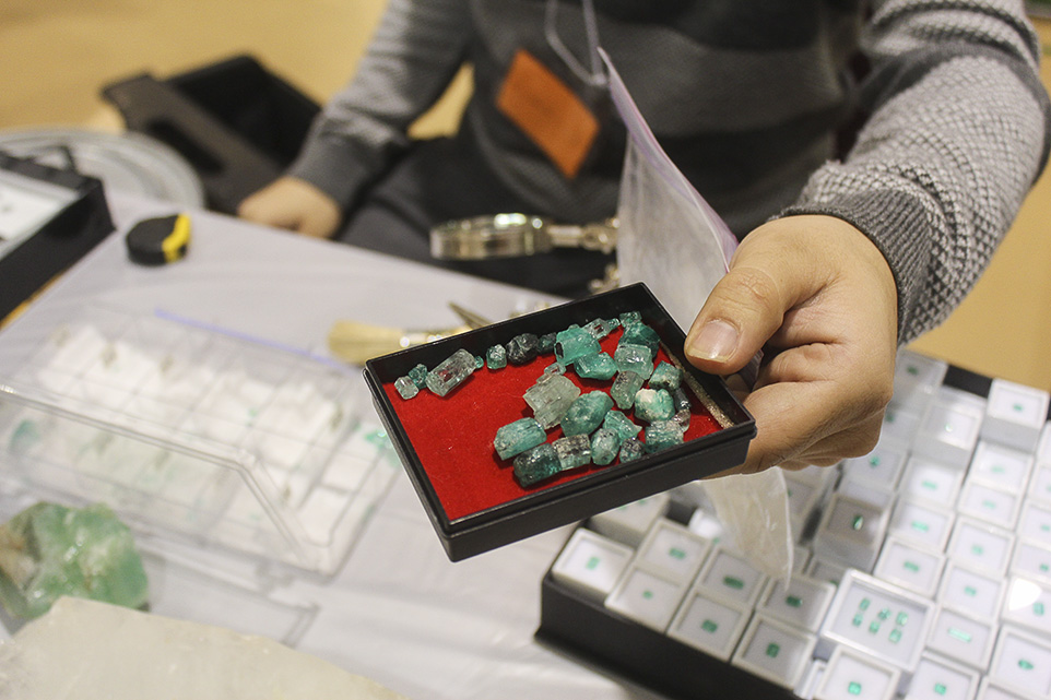 A Gem of a Time: Alex Kuznetsov shows off his families collection of Columbian diamonds. Vendors display their product at the fifth annual Gem and Mineral Show in Calgary on Friday, Oct. 31, 2014. (Photo by Stephanie Lem/The Press)