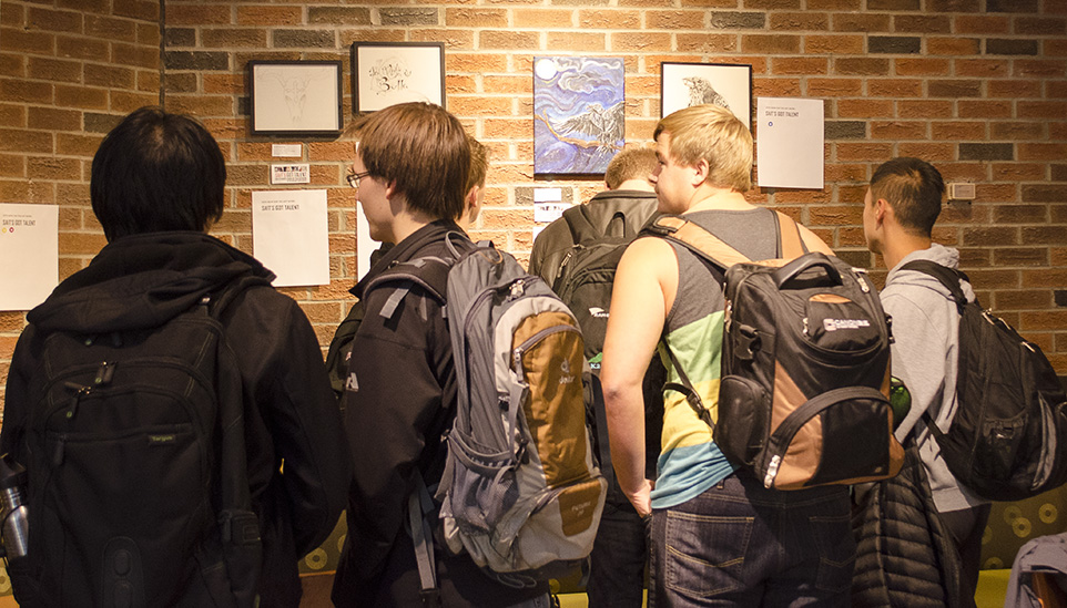 SAITSA Art Show: SAIT students spend some time looking over art pieces created by fellow students. The event was created by SAITSA to help involve SAIT students show off their artistic side. (Photo by Janelle Slingerland/The Press)