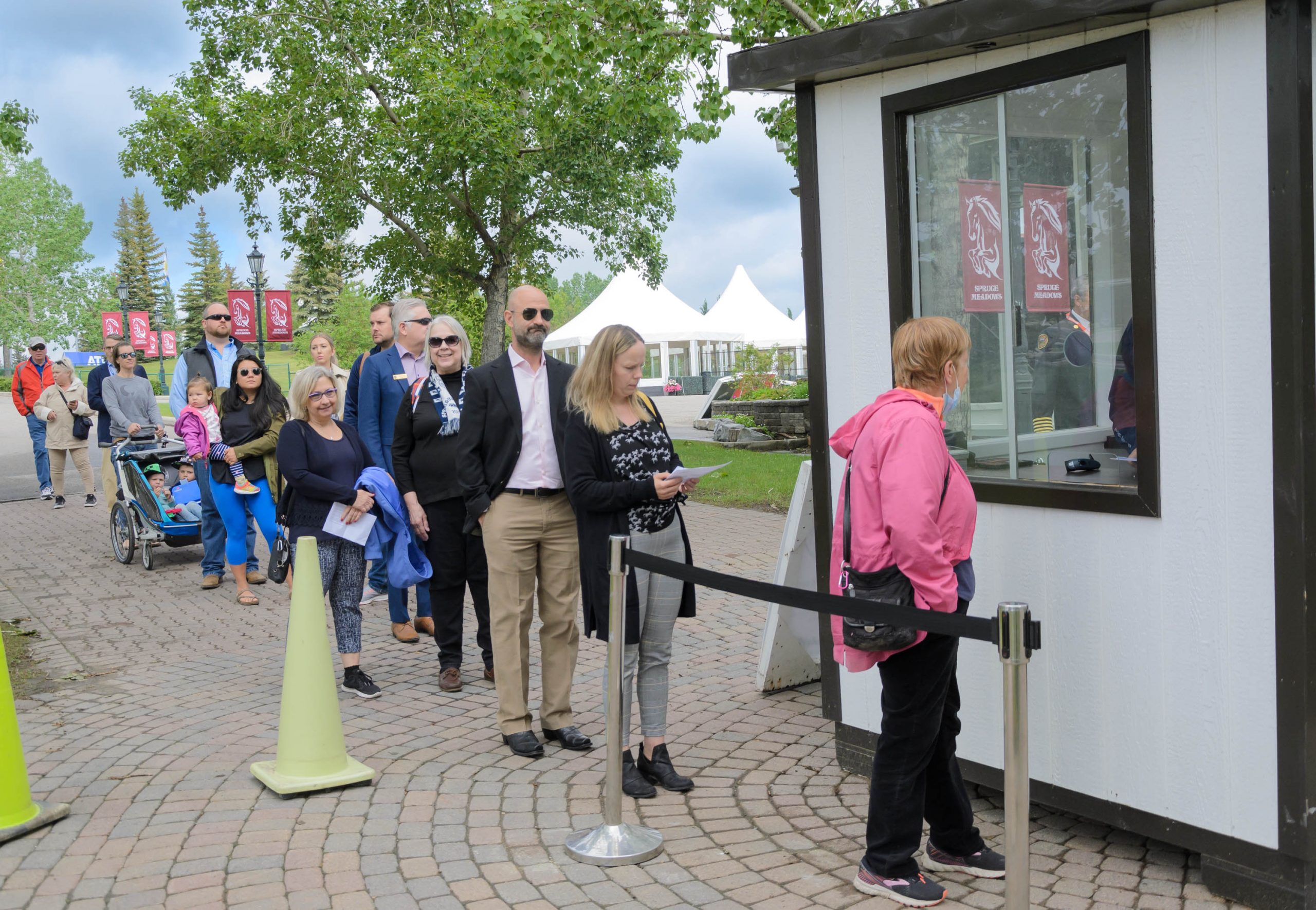 Fans line-up at the ticket booth to enter Spruce Meadows in Calgary. (Photo by Husain Dhooma/The Press)