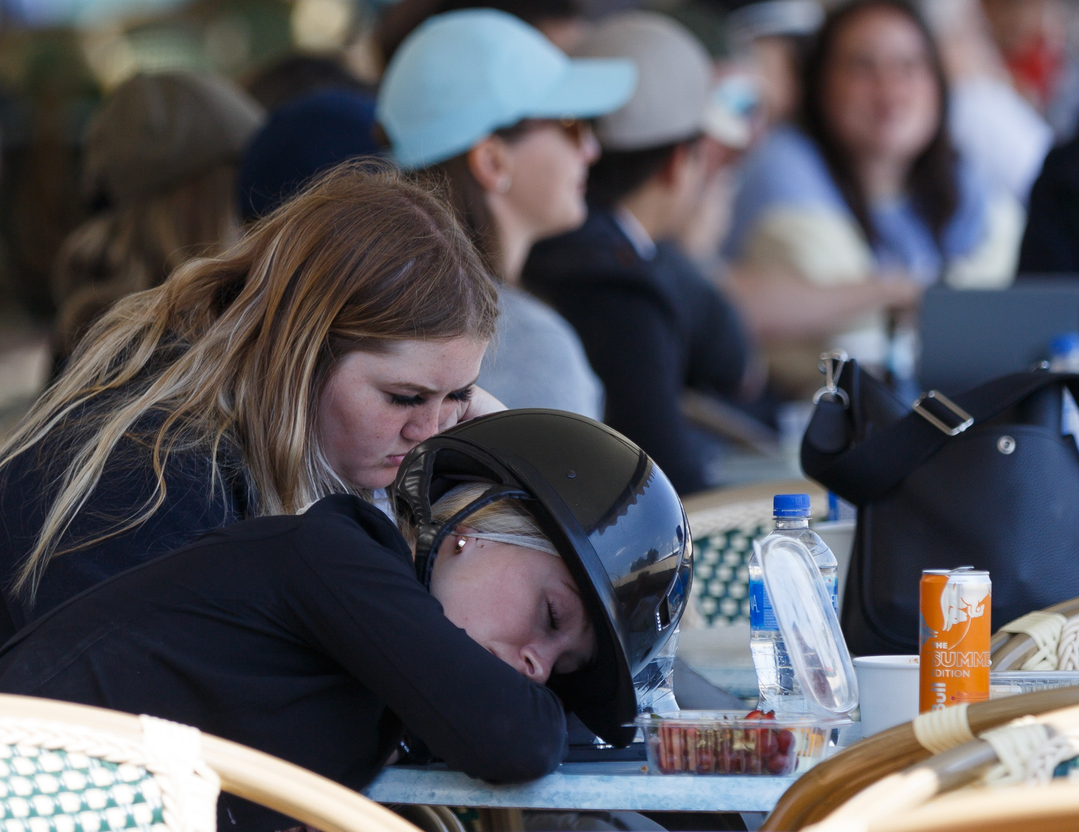 A rider takes a nap at Spruce Meadows in Calgary on Saturday, June 18, 2022. The Nationals took place from June 16-19 at Spruce Meadows. (Photo by Anna Burns/The Press)