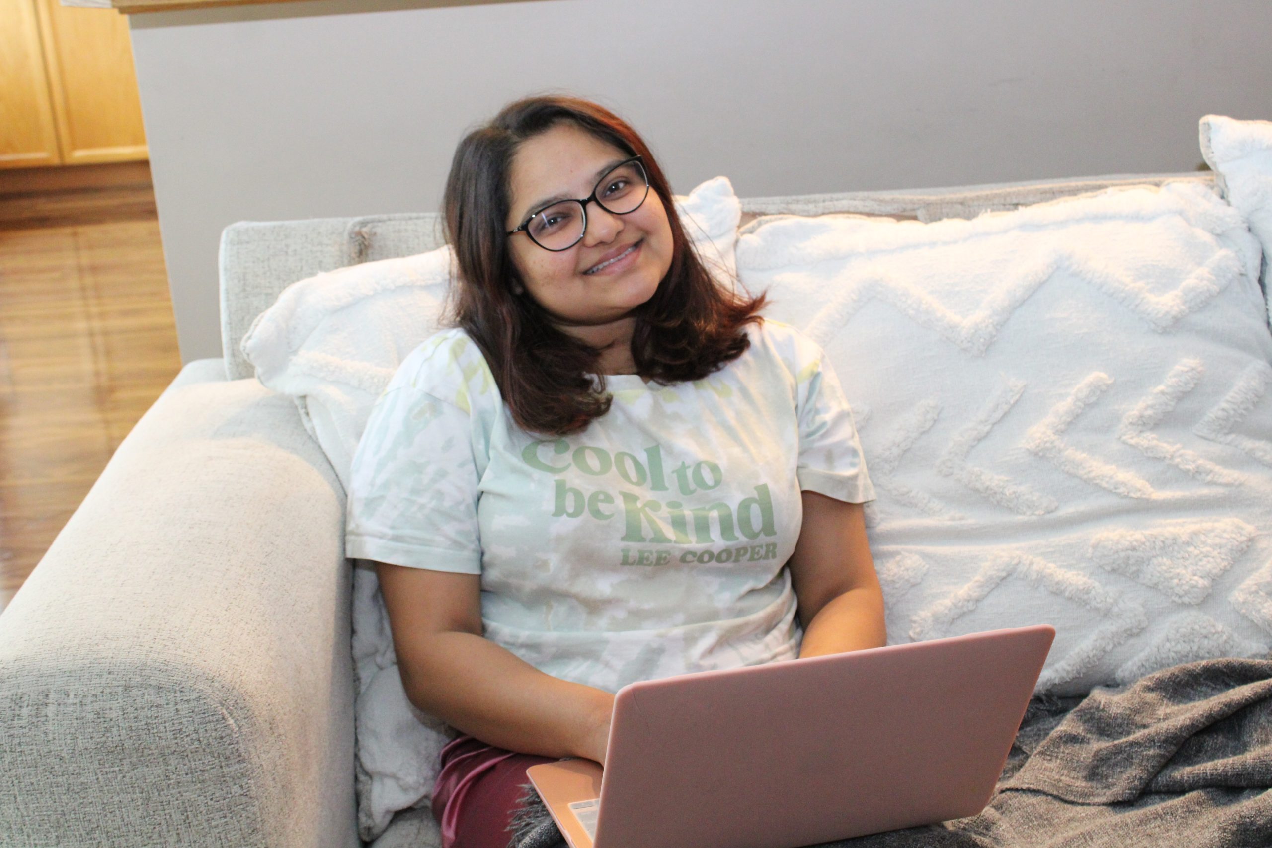 This is Story Package 1 and Nirali Gujjar gave a pose with a big smile while doing work from home at Coral Springs on Monday,2nd Oct 2023