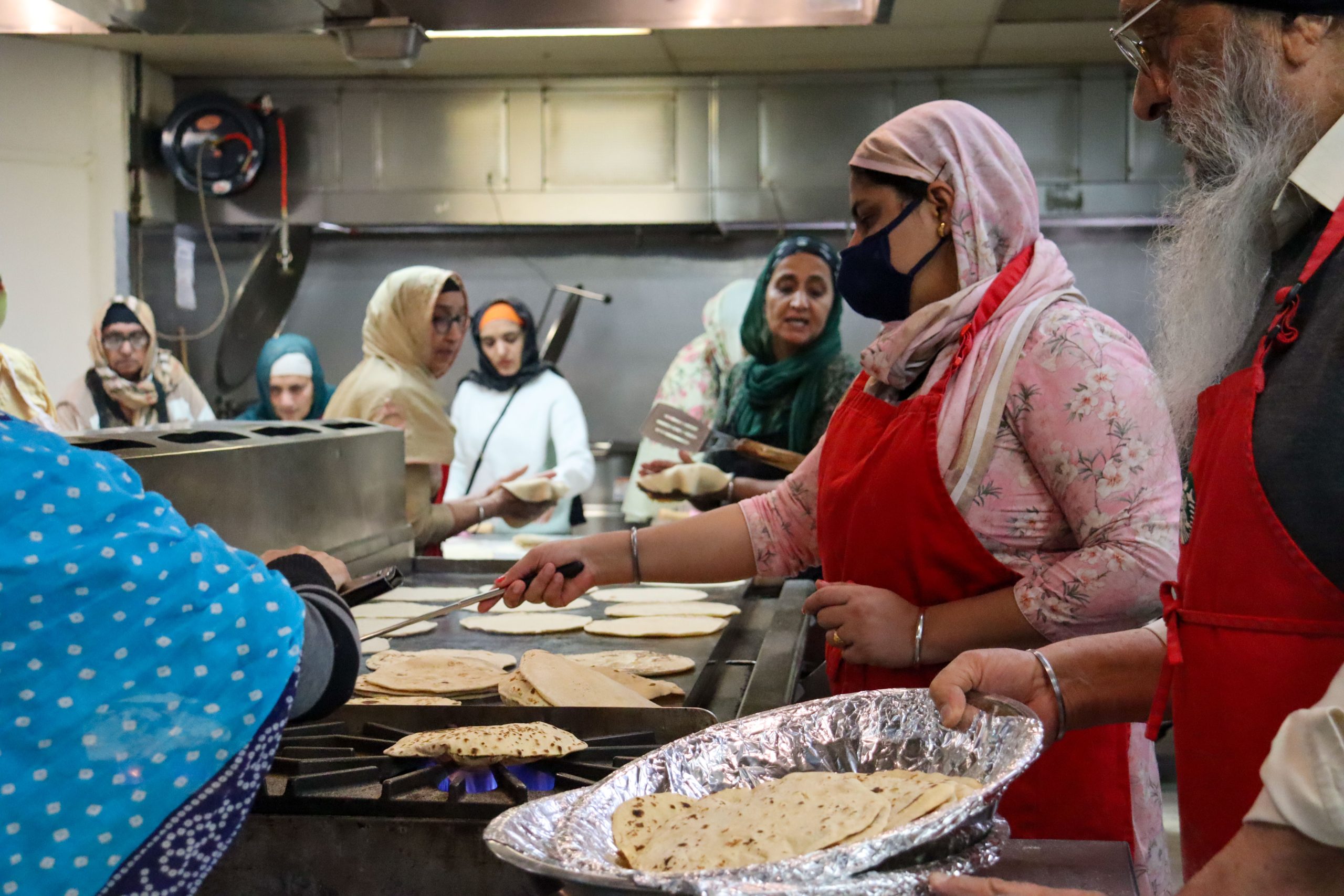 Volunteers helping making roti (flat breads) a part of lanagr in community kitchen of DCC( Dashmesh Culture Centre) Calgary, on Monday 30, 2023.