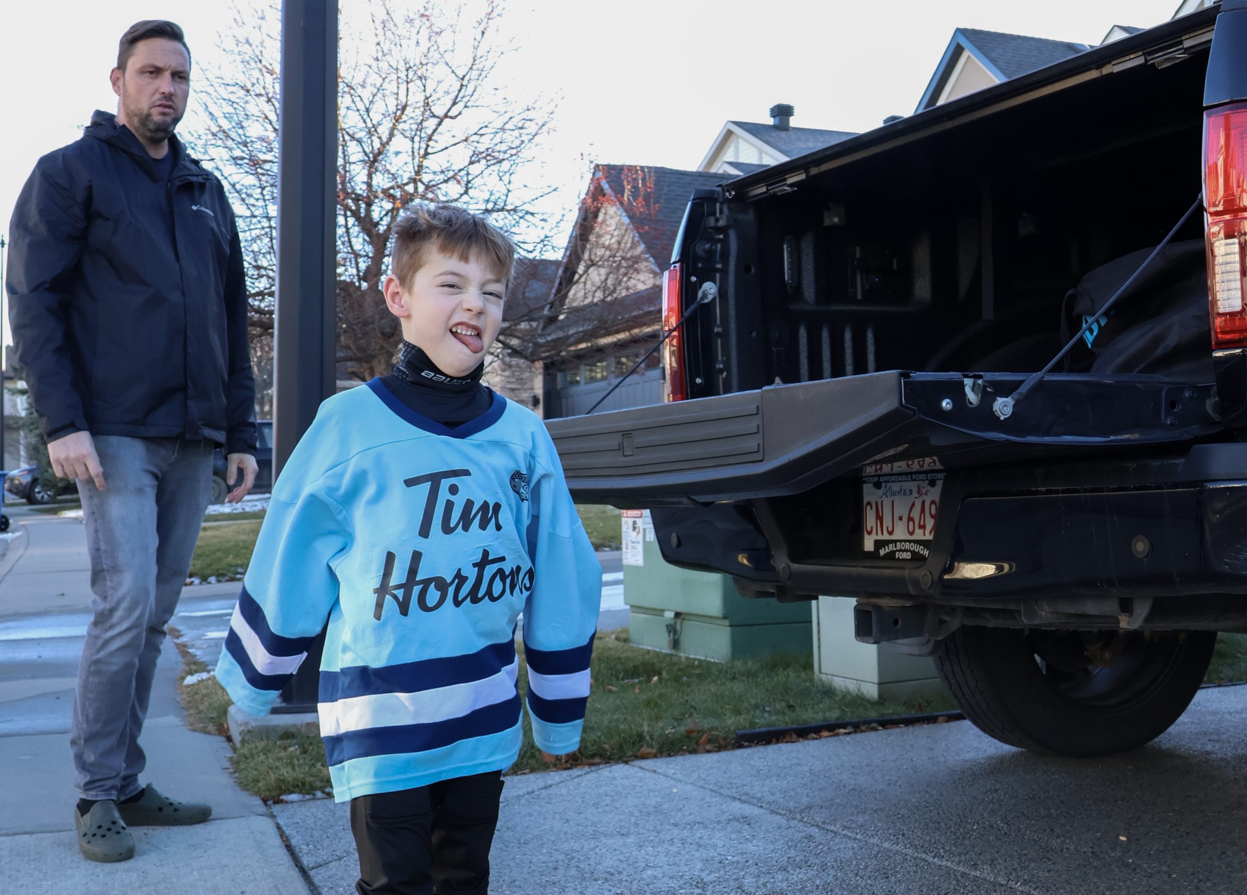 20241106 Youth Sports KB 0062 copy Miller Dunk poses for a photo in Calgary, ALTA. on November 6. Dunk is in his first year of organized hockey.