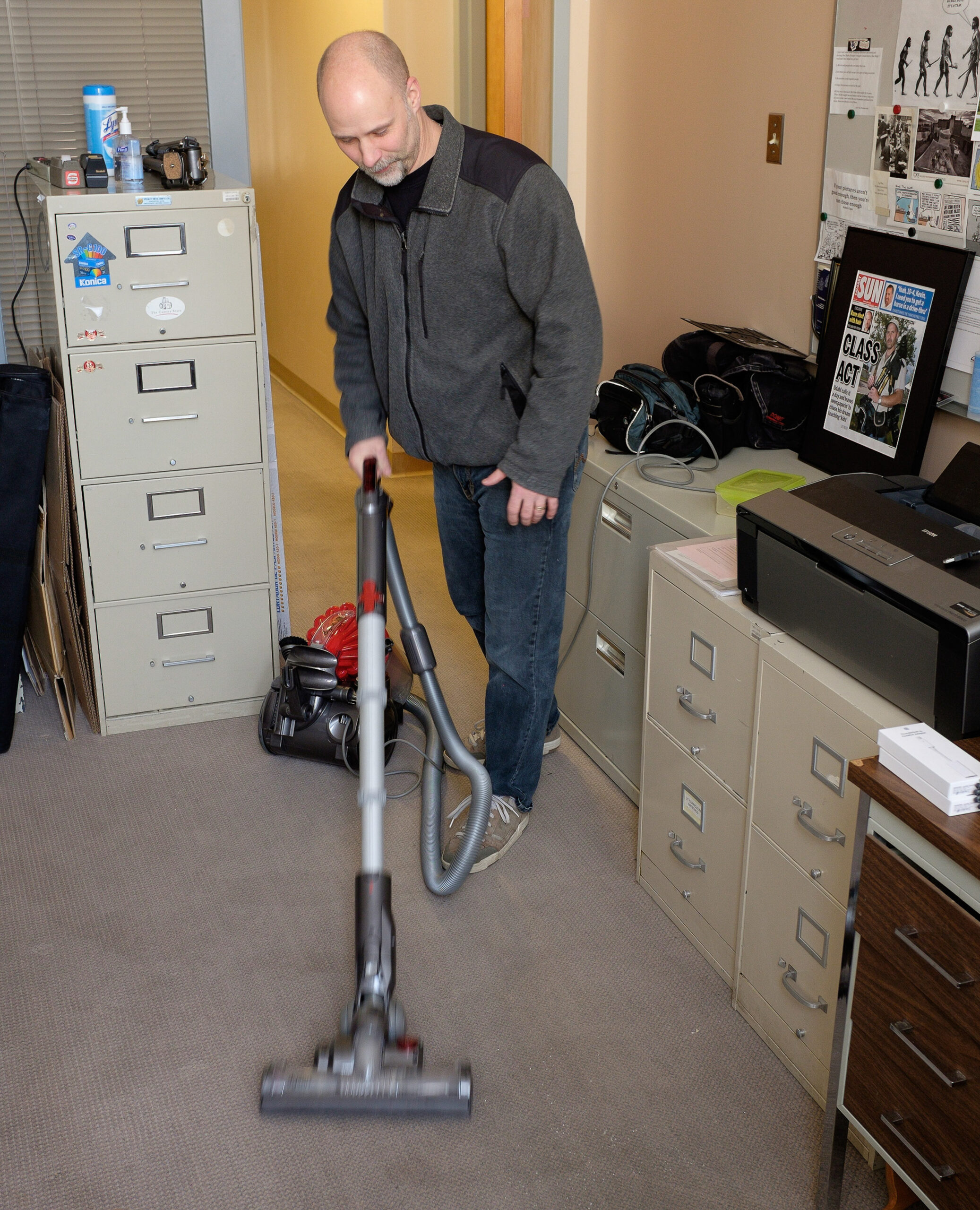 Kevin Udahl tidies up his office at SAIT in Calgary on Thursday, Sept. 25, 2025. The photojournalism instructor, who recently returned to the classroom after serving a 13-month prison sentence for impersonating an effective teacher, was expecting a visit from his parole officer. (Photo by Rob Galbraith/The Press)