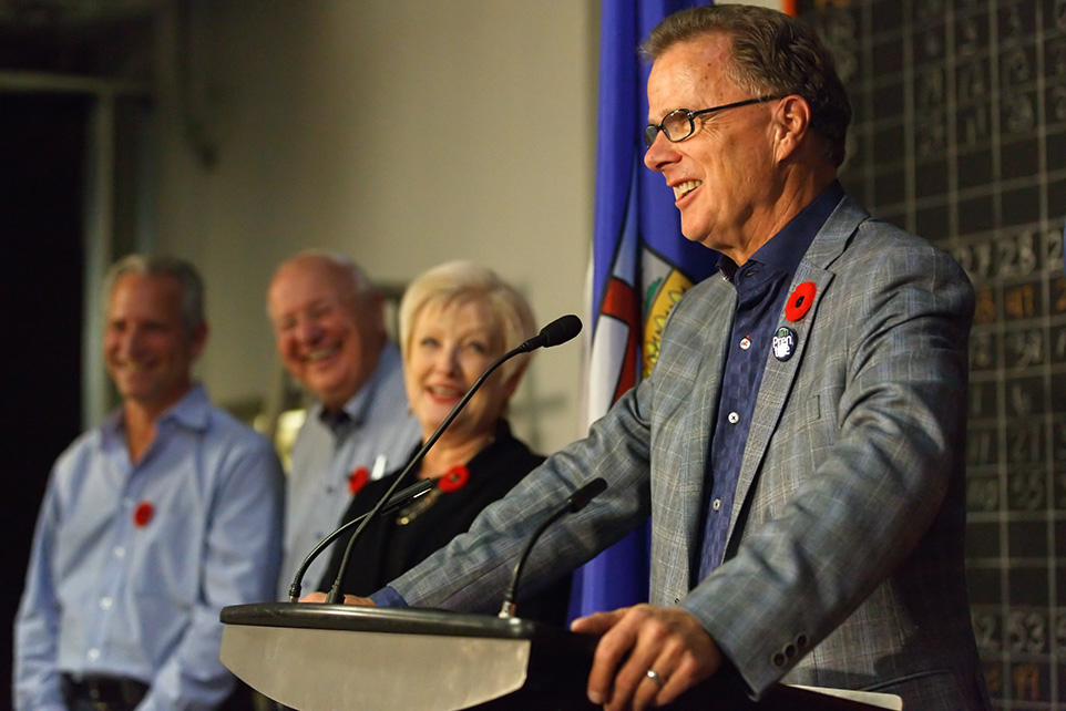 Victorious: Gordon Dirks, right, addresses supporters at his by-election headquarters in Calgary on Monday, Oct. 27, 2014. (Photo by Aryn Toombs/The Press)