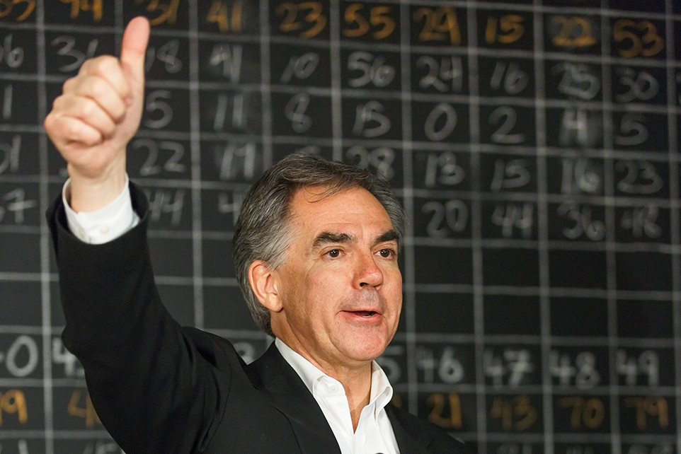 Decisive Victory: Alberta Premier Jim Prentice gives a thumbs-up signal to conservative supporters at the Gordon Dirks campaign headquarters in SW Calgary. Prentice won a decisive victory in The Calgary-Foothills by-election. (Photo by Aryn Toombs/The Press)