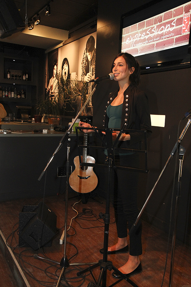Feature Pictures Poetry Night: Local poet Miranda Krogstad recites poetry during Expressions at Cafe Koi on Monday, Feb. 10, 2014. (Photo by Inonge Chimwaso/The Press)