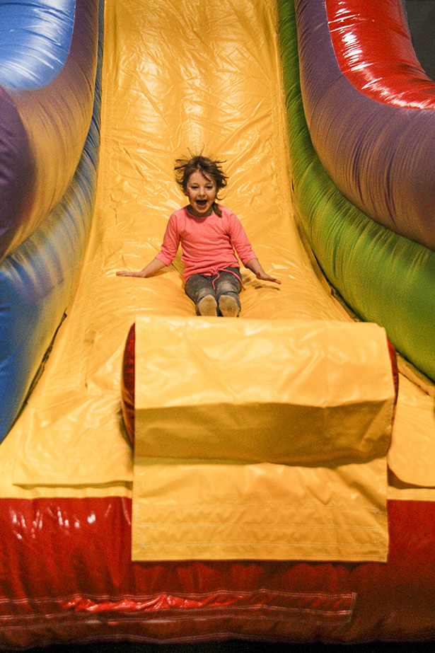 Getting out of that winter funk Winterfest took place in Chestermere on Saturday, January 25, 2014. The community came out in celebration of the upcoming 2014 Olympic games. Tayla Hoybak is all smiles while playing on the air gym.
