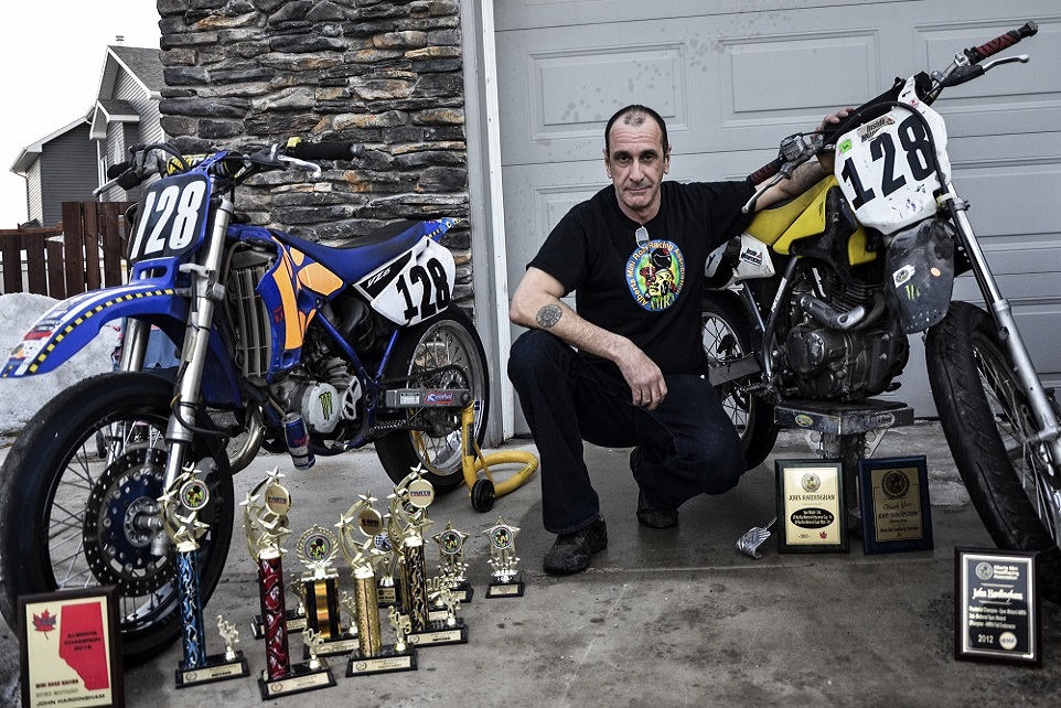 John Hardingham, executive for AMRA, shows off his collection of motorcycles and trophies. (Photo by Dylan Streifel/The Press)