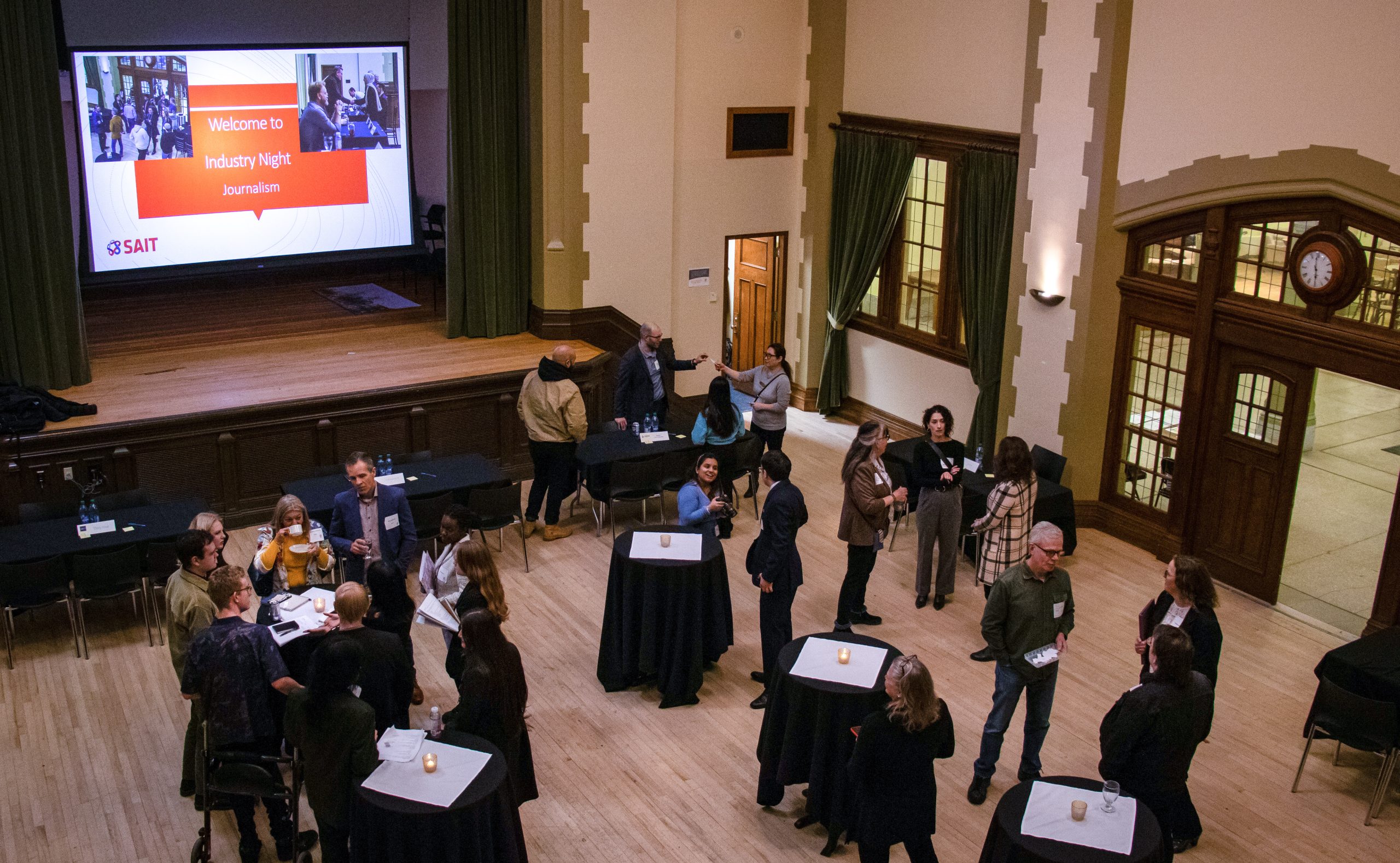 Students and industry professionals discuss and engage in small talk during SAIT’s journalism program’s industry night. (Photo: Armaan Khanna/The Press)