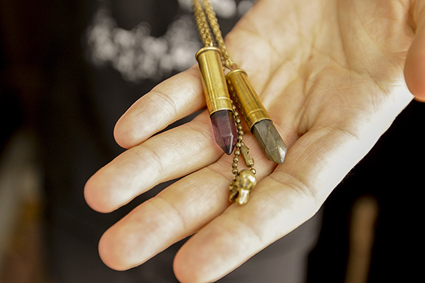 Market Collective: David Paddock is a local designer who makes necklaces for men and women made out of recycled gun shells and crystals. He will be at Market Collective this weekend showcasing his work at the Chinese Cultural Centre starting Friday at 4.pm. and again on Saturday and Sunday from 10 a.m. to 6. p.m. (Photo by Kelsi Gayda/The Press)