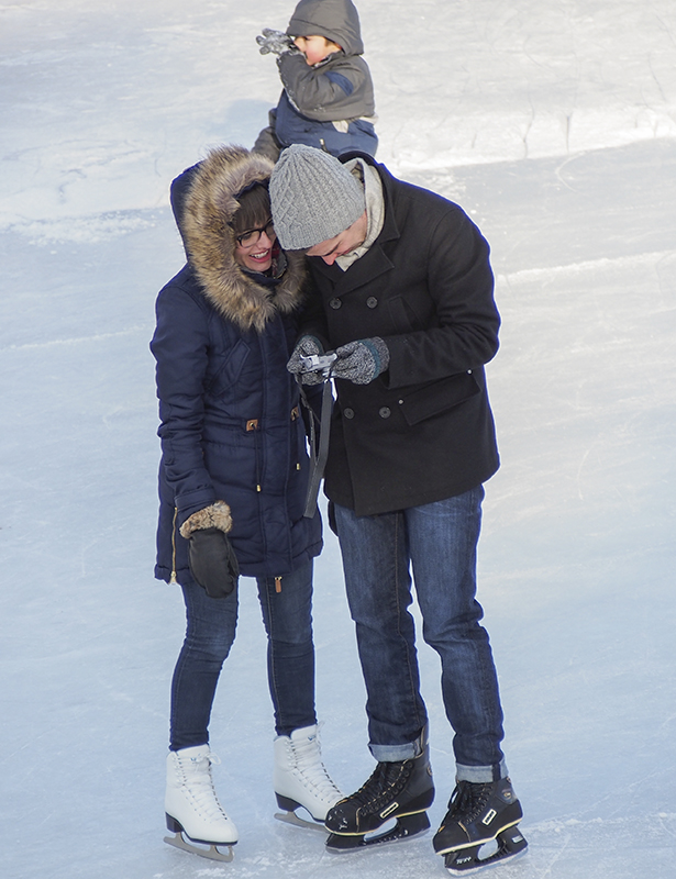 Frozen Smile: The few visitors of the frozen Bow River rink enjoy the afternoon together. (Photo by Leo Aragon/The Press)