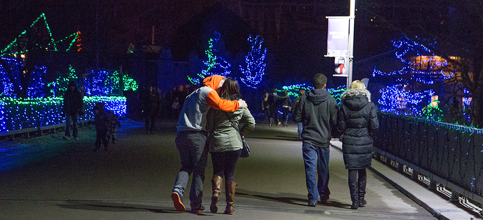 Christmas Lights A young couple enjoys the half-million coloured lights on display at the Zoolights event at the Calgary Zoo Friday, Nov. 29, 2013. The Zoo just reopened after a prolonged partial closure due to the June, 2013 flooding. The display runs from Nov. 29 to Jan. 4. (Photo by Sarah Collins/The Press)