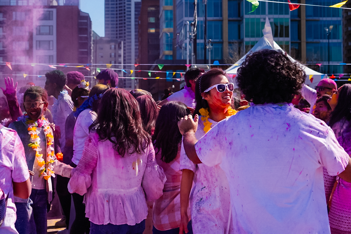 Dancing through clouds of colour, attendees can be seen dancing with joy at Calgary’s Holi celebration on Saturday April 4, 2026. (Photo by photo by Alicia/ SAIT)