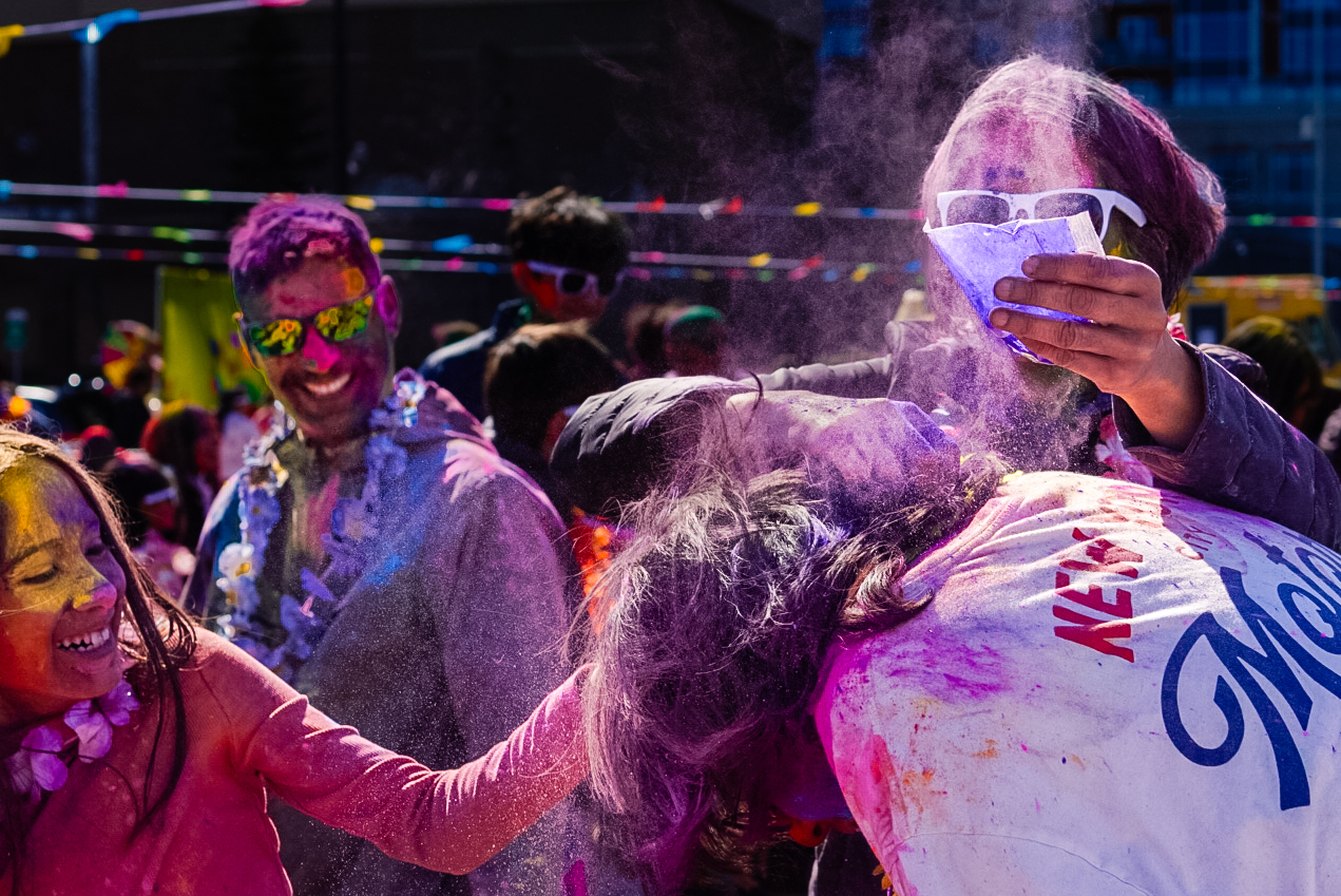 Clouds of colour, attendees can be seen covered from head to toe at Calgary’s Holi celebration on Saturday April 4, 2026. (Photo by photo by Alicia/ SAIT)